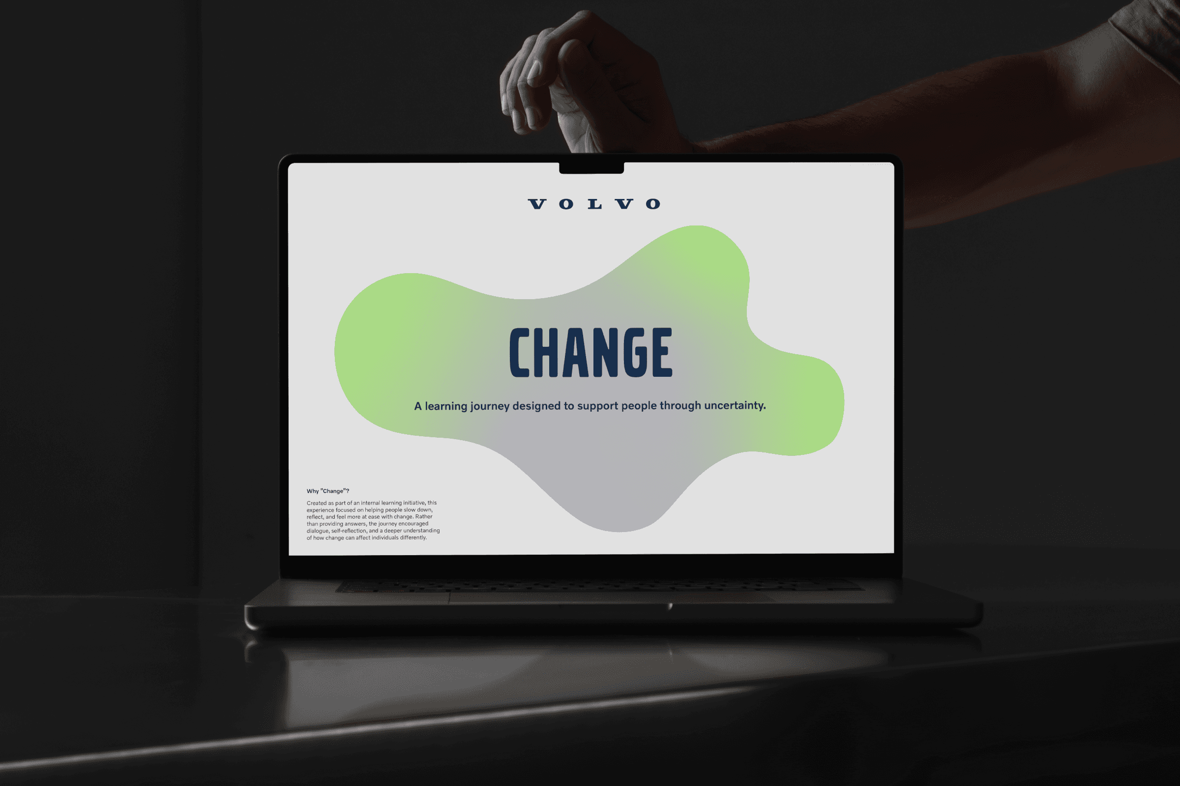 This internal learning study was developed in collaboration with Funkis Multimedia for Volvo Trucks, focusing on how change is experienced, understood, and navigated in everyday work life. The initiative was designed as a reflective learning journey, encouraging dialogue, self-awareness, and personal insight rather than instruction. The visual direction was intentionally warm, calm, and human. By avoiding aggressive or authoritative expressions, the visual system aimed to create a sense of safety and openness, allowing participants to approach change with curiosity, trust, and a feeling of emotional clarity.